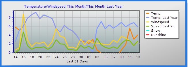Minimum dewpoint = -8.6°C on day 11 at time 16:01